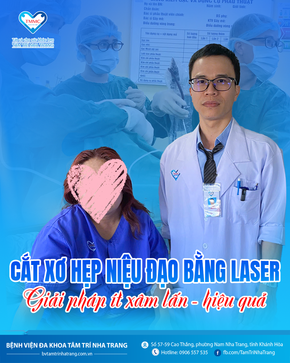 Tại BVĐK Tâm Trí Nha Trang, bệnh nhân nữ 52 tuổi có tiền sử hẹp niệu đạo nhiều năm, đã điều trị nhiều nơi nhưng vẫn tái phát, nhập viện trong tình trạng bí tiểu cấp kèm viêm bàng quang cấp. Sau thăm khám lâm sàng và cận lâm sàng, bệnh nhân được chẩn đoán hẹp niệu đạo do xơ hóa và được chỉ định cắt xơ hẹp niệu đạo bằng laser.