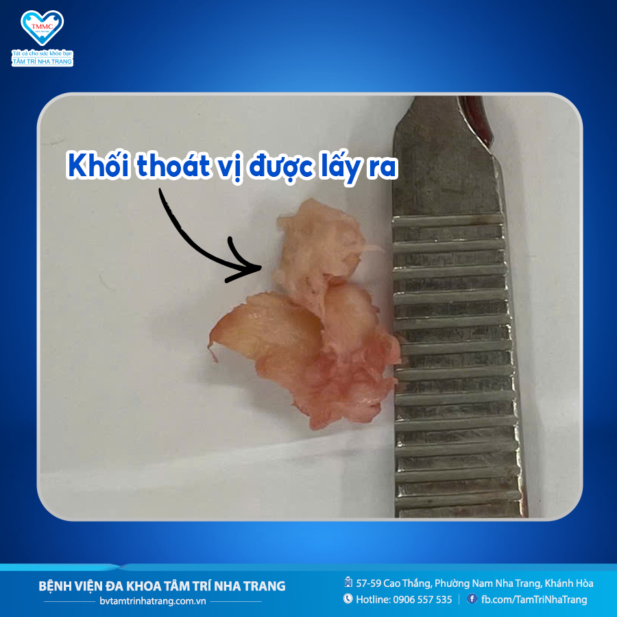 Trong quá trình phẫu thuật, bác sĩ phát hiện khối thoát vị lớn đã vôi hóa. Đặc biệt, khối thoát vị tầng L5–S1 bị vỡ và di trú xuống dưới, chèn ép rễ thần kinh — nguyên nhân khiến bệnh nhân đau dữ dội và hạn chế vận động trong thời gian qua.