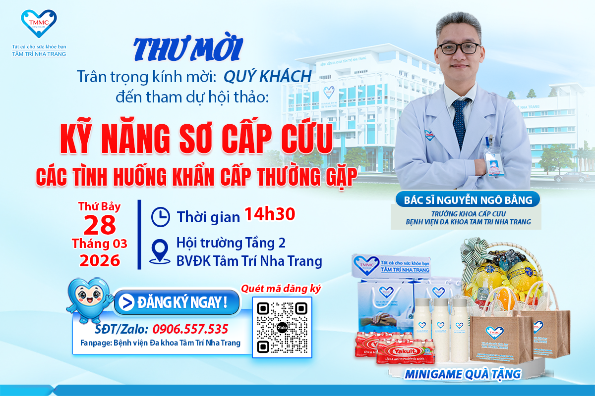 Đừng bỏ lỡ hội thảo: “KỸ NĂNG SƠ CẤP CỨU – CÁC TÌNH HUỐNG KHẨN CẤP THƯỜNG GẶP” từ Bệnh viện Đa khoa Tâm Trí Nha Trang – tại đây, bạn sẽ được BS. Nguyễn Ngô Bằng (Trưởng khoa Cấp cứu) trực tiếp hướng dẫn và thực hành các kỹ năng quan trọng: